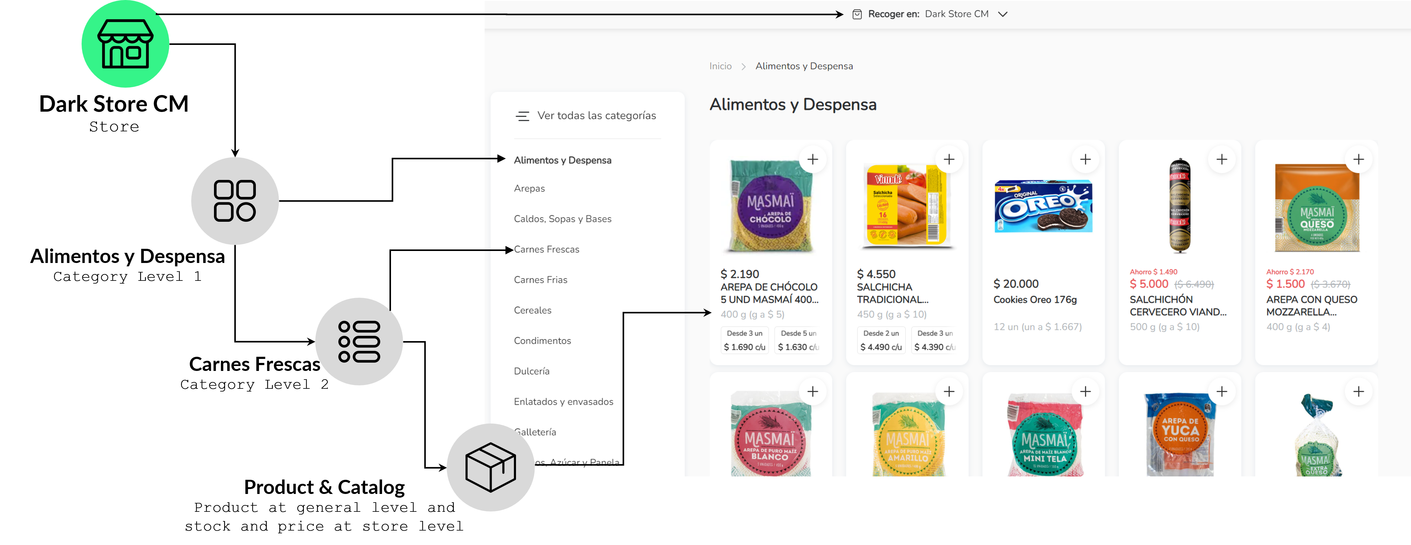 The main collection is the Catalog, which links all other collections and represents the products available in a specific store and at least one category.