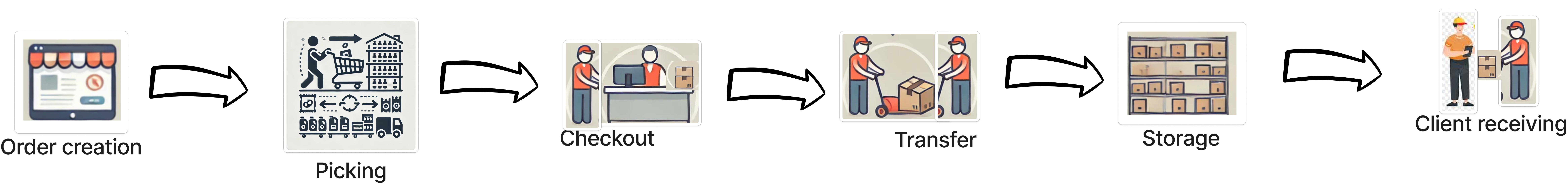 The Picking stage involves the collection of items according to the defined operational model, such as “Pick & Collect” or “Pick & Delivery with storage.” This step is critical for gathering the correct items for the order.
