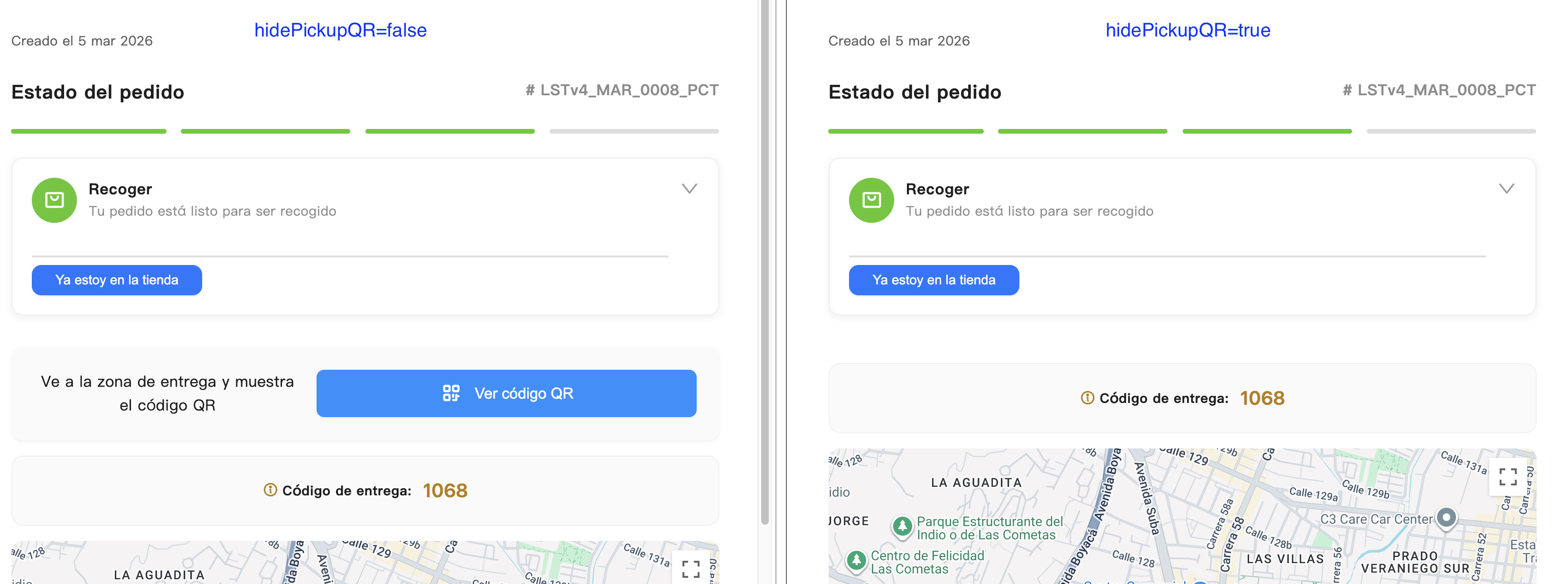 | hideElements.pickupQR | hidePickupQR | Parameter to hide the Pickup QR. It is a boolean, and the default value is false (true - Hide, false - View) |